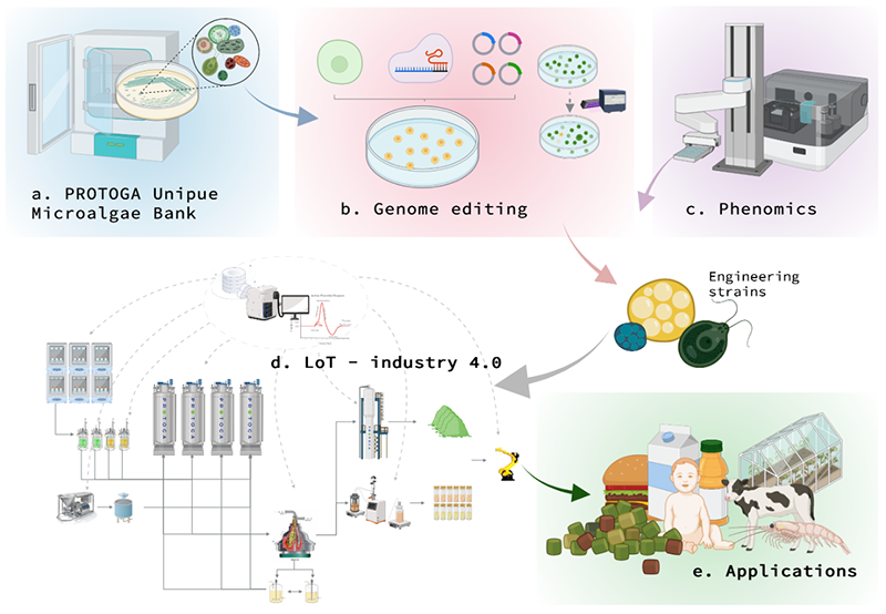 微藻作为重要的光合底盘细胞,能够利用CO2与太阳光合成复杂物质,在生物制造方面具有低成本优势,生产应用潜力巨大。元育生物从微藻的商业化应用场景出发,持续开发高效工程藻株及生产工艺,用工业化生产替代微藻传统的农业养殖。